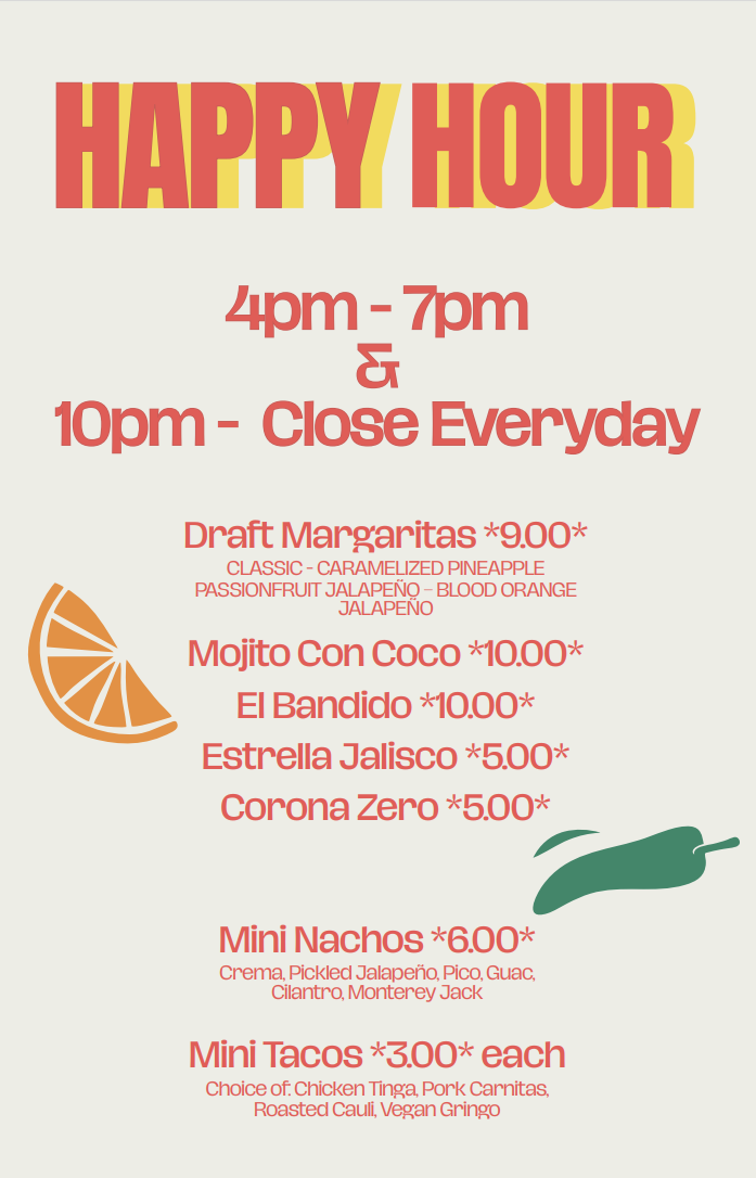 So whether you’re winding down after work, starting the night with friends, or chasing the city’s best deals on tacos and tequila, Street Taco has you covered. Swing by for today’s happy hour in NYC, sip a marg, and let the good vibes roll — Street Taco style.